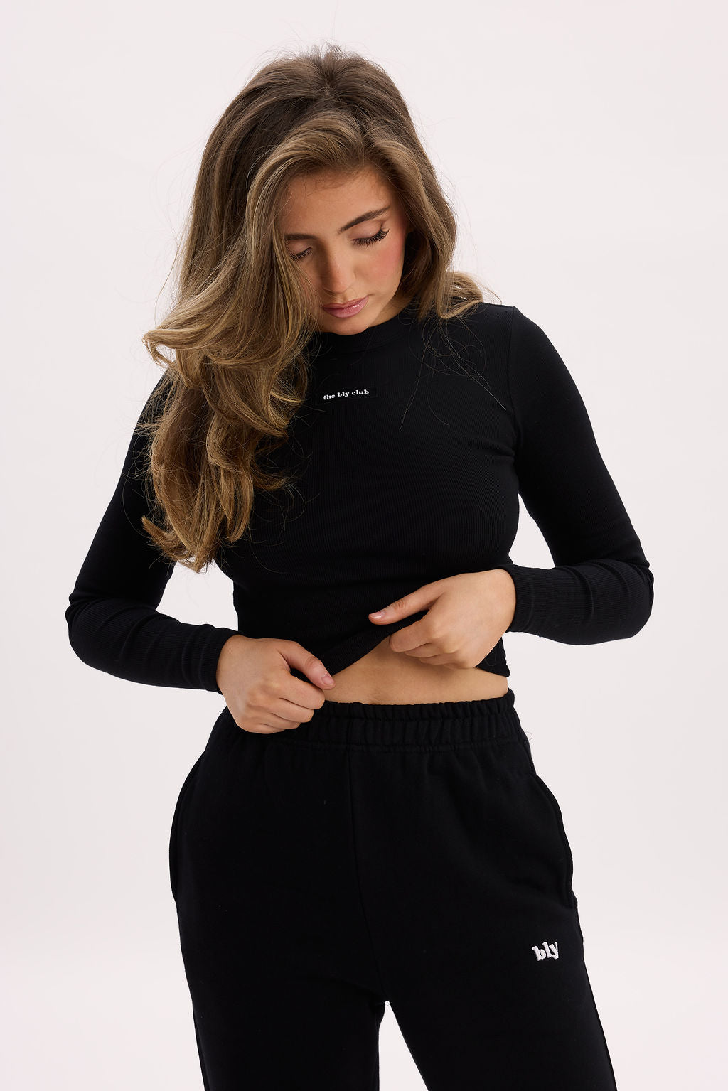 Our newest addition to our staples range - our long sleeved black top with 'The Bly Club' badge at the front. The perfect every day top to go with any look, especially under our staple blazers.